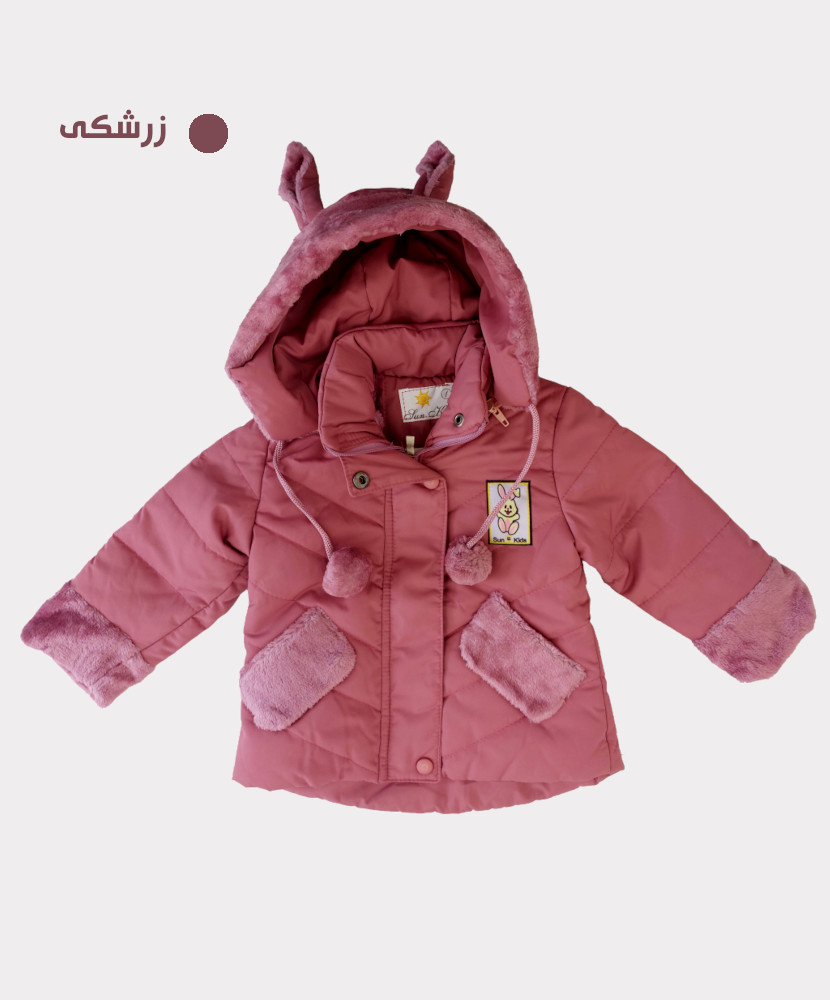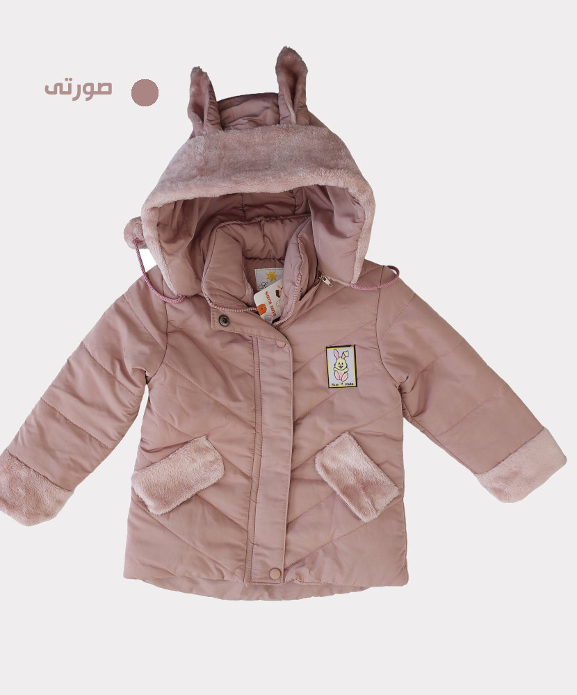 کاپشن دخترانه همراه با کلاه زیپ دار.
